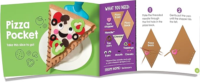 - Practice basic stitches with a donut and sandwich, then make a cupcake plushy, cookie Keychain, and pizza pocket