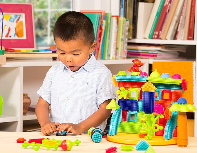 - Building Blocks: Featuring soft, interlocking bristles that stick together at any angle, Bristle Blocks are designed for easy assembly!