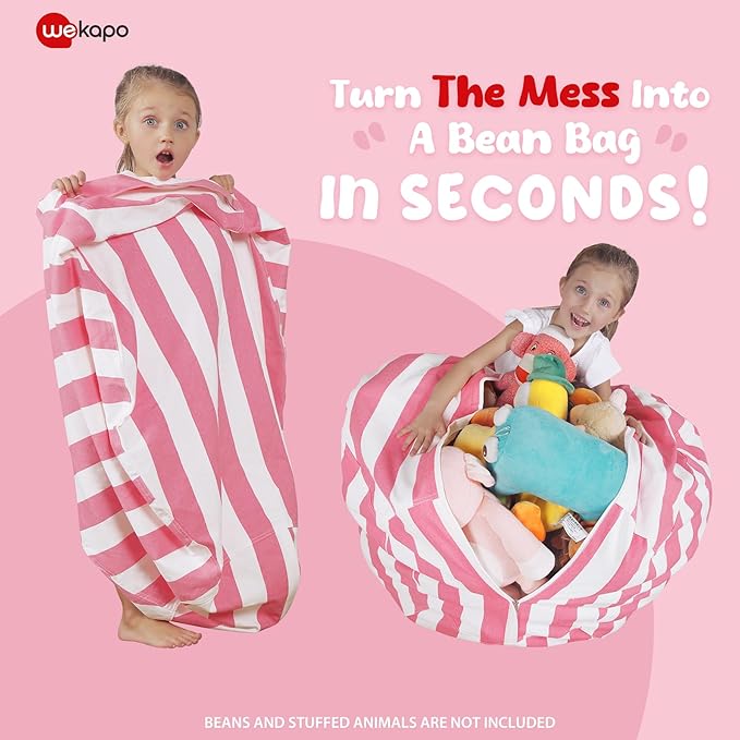 Wekapo Stuffed Animal Storage Bean Bag Chair Cover for Kids | Stuffable Zipper Beanbag for Organizing Children Plush Toys Large Premium Cotton Canvas (Pink, X-Large)