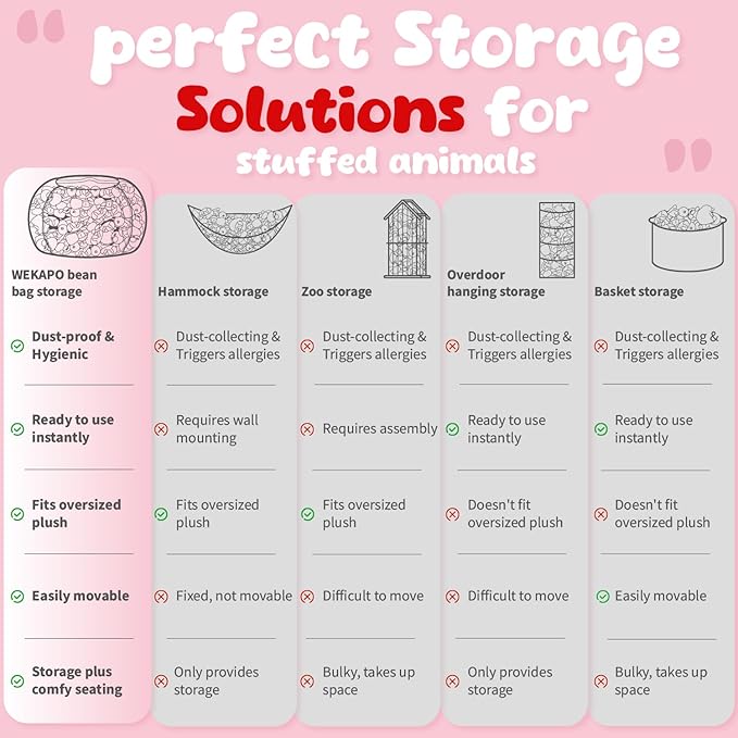 - Wekapo Puts Customers First - Wekapo Stuffed Animal Storage Bean Bag Chairs offer a 90-day unconditional return or exchange policy. Wekapo is dedicated to address any product/service issues and is committed to delivering a 5 star experience for all buyers.