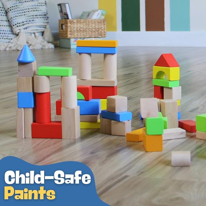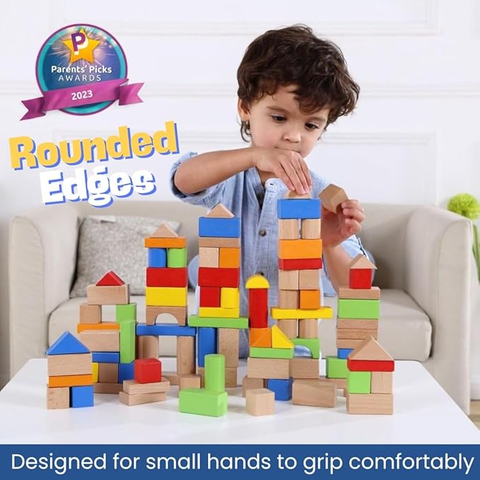 - β Durable and Sustainable Wood - Each piece is carefully crafted to make sure there are no rough edges, ensuring safe play for kids and toddlers. Building blocks for toddlers are a great choice for any occasion and play area; home, classroom, school, daycare, party and birthday gifts. 100 piece wooden block set.