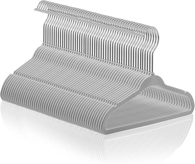 Casafield 50 Velvet Baby Hangers - 11" Size for Infant & Toddler Clothes - Gray