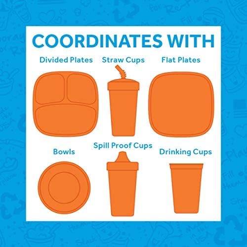 Re-Play Made in USA Toddler Forks and Spoons, Pack of 8 Without Carrying Case - 4 Kids Forks with Rounded Tips and 4 Deep Scoop Toddler Spoons - 0.2" Thick Toddler Utensils, Citrus