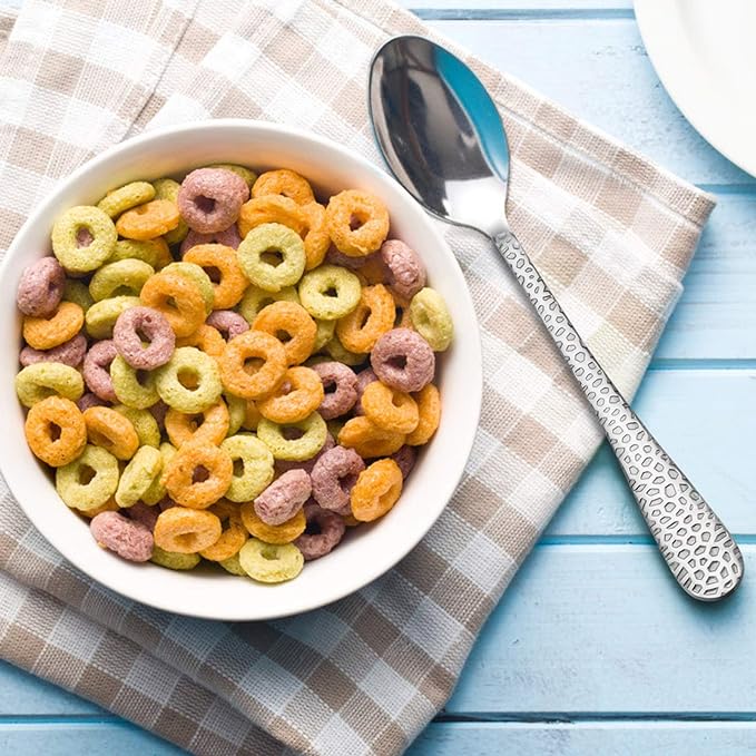 - PERFECT SIZE- Customized mini size to fit toddlerâs hand and mouth, Hammered pattern gives a shiny glow to catch toddlersâ attention, Proper thin fork tines make it easy for kids fork soft food by themselves, suggest for 24 months +