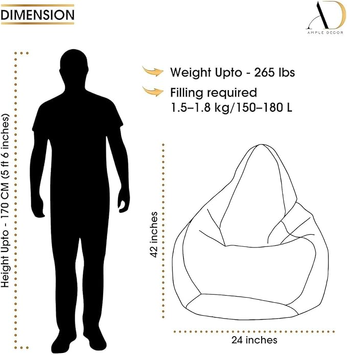 - BEAN COVER ONLY: This package only contains the bean bag cover; it does not come with any bean filling. The bean filling needs to be bought separately. The amount of use determines how often the bean bags need to be refilled. In this size, 1.5β1.8 kg/150β180 L can be filled.