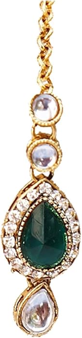 Aheli Indian Traditional Bollywood Kundan Maang Tikka Earrings Necklace Set Ethnic Jewelry Gift for Women Green Blue