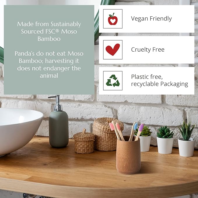 - ๐ฟ ORGANIC BAMBOO - Each manual toothbrush is made from a single piece of naturally sustainable bamboo, as such no glue is required. One of the fastest-growing plants in the world making it wonderfully sustainable. Bamboo is a versatile plant with many uses and snack of one of our favourite mammals the Giant Panda, who makes an appearance on our boxes. Within the right conditions Bamboo can regrow 12-18" within 24 hours, allowing this versatile crop to regrow quickly post harvest
