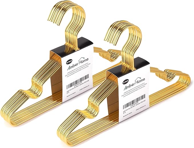Amber Home 20 Pack 12 Inch Gold Kids Baby Hangers, Strong Metal Children Clothes Hangers for Closet, Space Saving Infant Hanger for Toddler Coats Pants (Gold, 20)