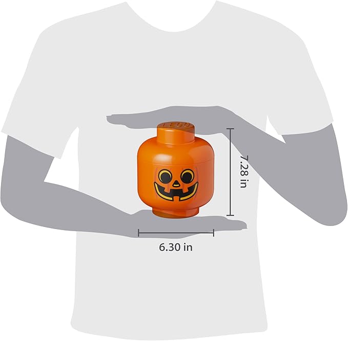 Room Copenhagen, LEGO Storage Heads Stackable Storage Container - Buildable Organizational Bins for Kid’s Toys and Accessories - 6.30 x 6.30 x 7.28in - Small, Pumpkin, Holds 250 Bricks