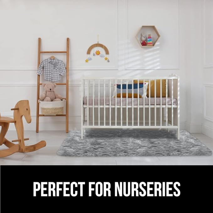 Gorilla Grip Fluffy Faux Fur Rug, Machine Washable Soft Furry Area Rugs, Rubber Backing, Plush Floor Carpets for Baby Nursery, Bedroom, Living Room Shag Carpet, Luxury Home Decor, 2x4, Gray