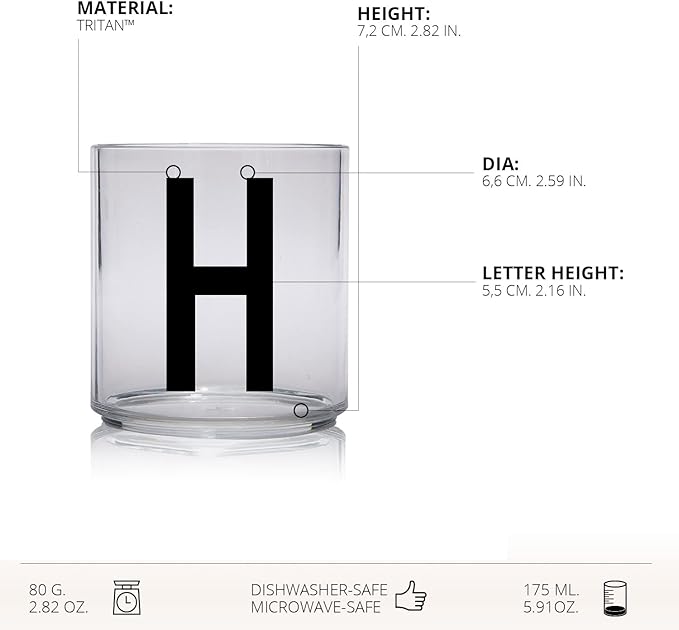 Design Letters Tritan Dinnerware Cups for Kids A-Z 6 Oz| Kids Glass Designed in Denmark for Baby Feeding | Toddler Cup for Drinking | Unbreakable Tableware for Baby|Stackable Tumbler Cup BPA/BPS Free