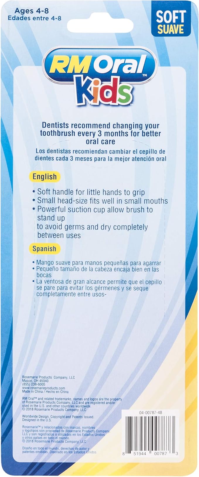 - Includes 2 RM Oral Kids 4 packs of healthy fun suction cup soft toothbrushes