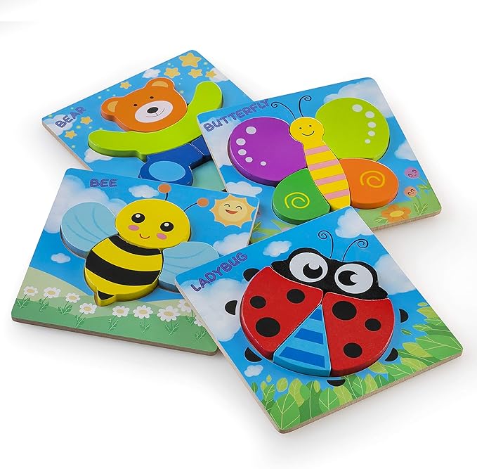 - Set of 4 Wooden Puzzles for Kids - Give your kids fun learning toys that will keep them entertained! Our toddler jigsaw puzzles feature 4 cute puzzles in different figures and shapes