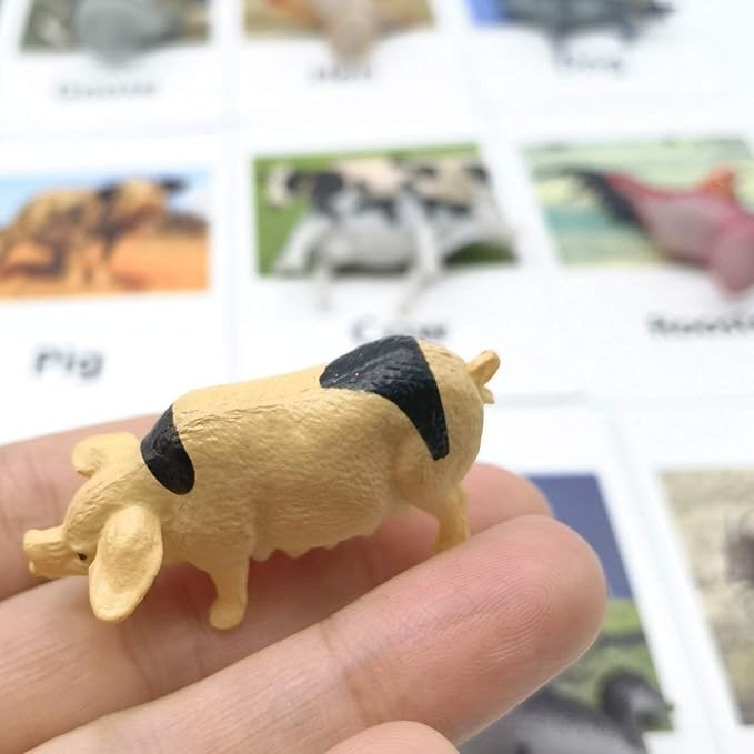 - The Montessori animal matching cards packet comes in set of 12 cards professionally printed on cardstock, size 2.7’’x 4.3’’ (7x11cm), and 12 animal plastic objects.