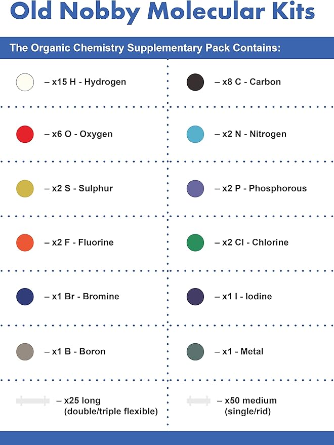 Old Nobby 118-Piece Supplementary Chemistry Molecular Model Kit - Build 3D Structures for Study, Teaching and Lab Use - Durable Atoms and Bonds, Easy Assembly with Portable Storage Case