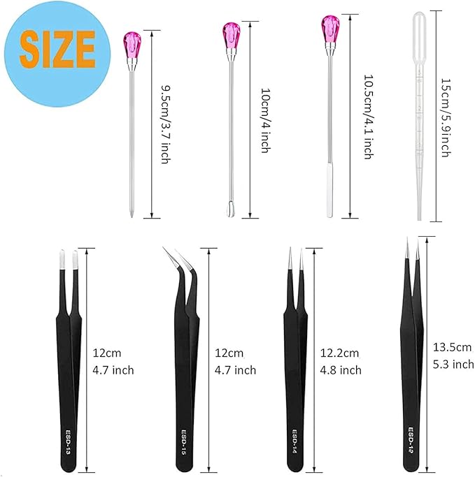 - 【High Quality Material】: Our resin stirring tools are made of alloy with a diamond-shaped head. And the resin tweezers are made of high strength premium stainless steel. The anti-static, non-magnetic, corrosion-resistant and safe plating design makes them reusable.