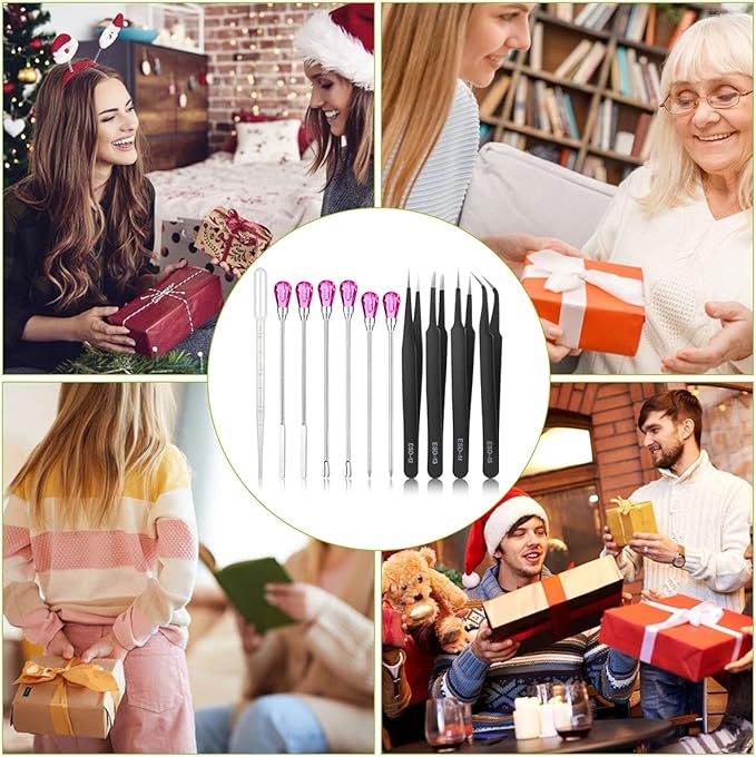 - 【11 Pcs Cute Resin Tools】: Our metal resin stir sticks includes 2 pcs stir sticks, 2 pcs resin spoons, 2 pcs poke needles, 4 pcs epoxy resin tweezers and 1 pc transfer pipette. These uv resin tools are totally enough for your daily needs and use. They will be your practical assistants in DIY resin work. NOTE:If the pink gems are loose. A simple twist and they are fine.