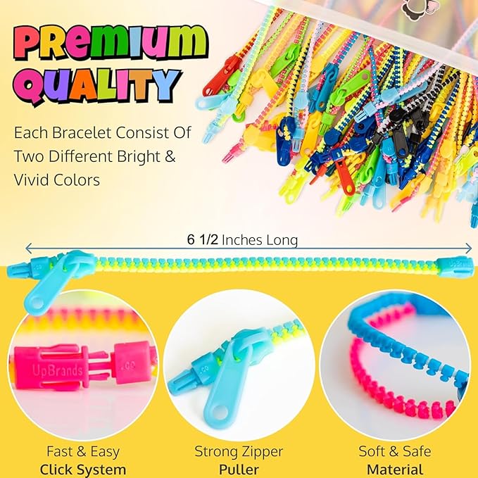 - Add to Cart Now! 100% - no matter what - Guarantee - 30 days money back - if you want to return your product. Any questions please feel free to contact us, we will deal with it within 24 hours. 100% satisfaction guarantee and friendly customer service. UpBrands Fidget Zipper Bracelets Pack is selling in bulk, so they have an excellent unit price compared to similar toys sold in vending machines at rates of 1 dollar or more.