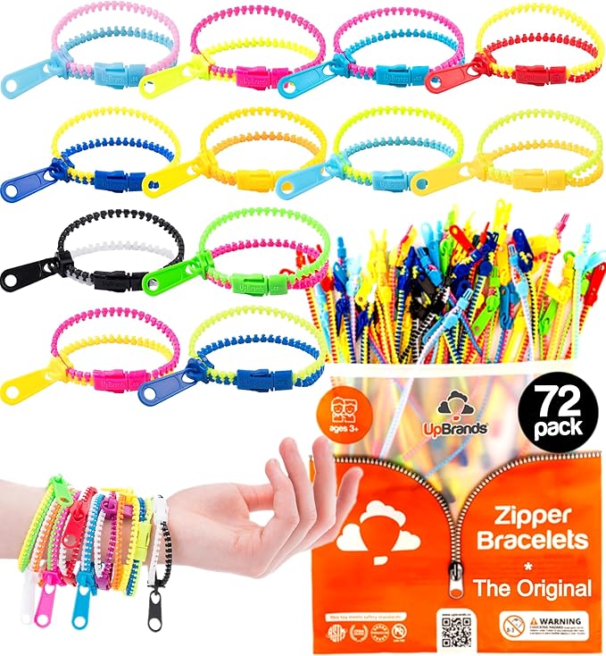 - UpBrands 72 Pack Fidget Zipper Bracelets Sensory Toy - an excellent kit for birthday party favors for kids. They are a very popular party favor hot toys for your child's Birthday party. Children will play with these plastic bracelets fidget jewelry and will love to share them in goody bag stuffers. Great Sensory Figit Stress Relief Toys for Special Needs Children. Perfect for killing time, anti-stress, better focus, ADHD, or autistic children.