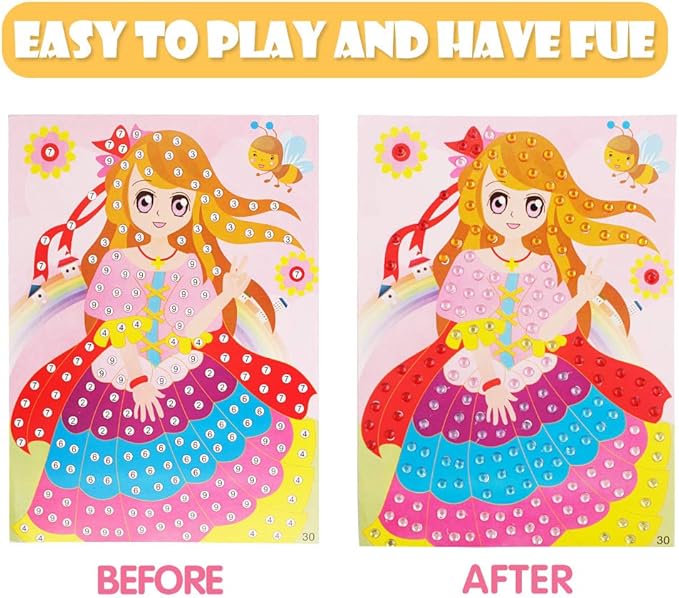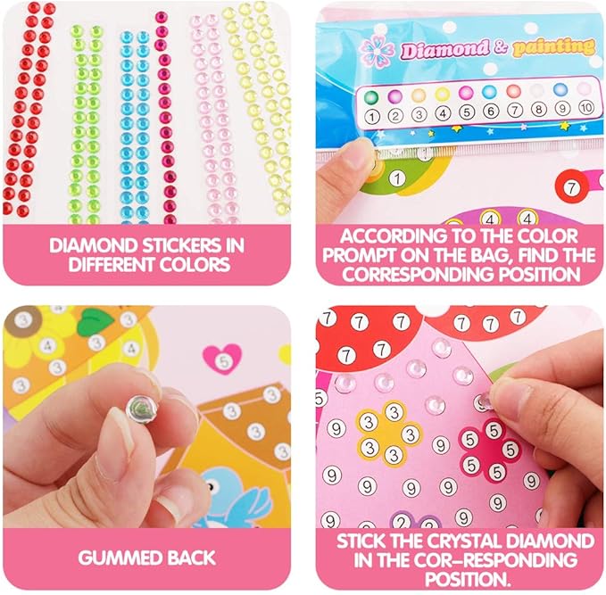 - 10 individually Crystal Mosaic Sticke for kids ages 3-6 years old. Easy, funny, wonderful- educational toys, develops hand-eye coordination, fine motor skills and creative thinking