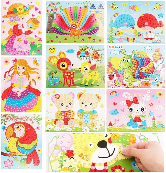 10 Pcs Kids Arts and Crafts Kits-Crystal Mosaic Sticker Painting Learning Education Toys for Toddler Kids, Early Learning Games Handmade Art Kit for Preschool Toddlers Boys Girls.