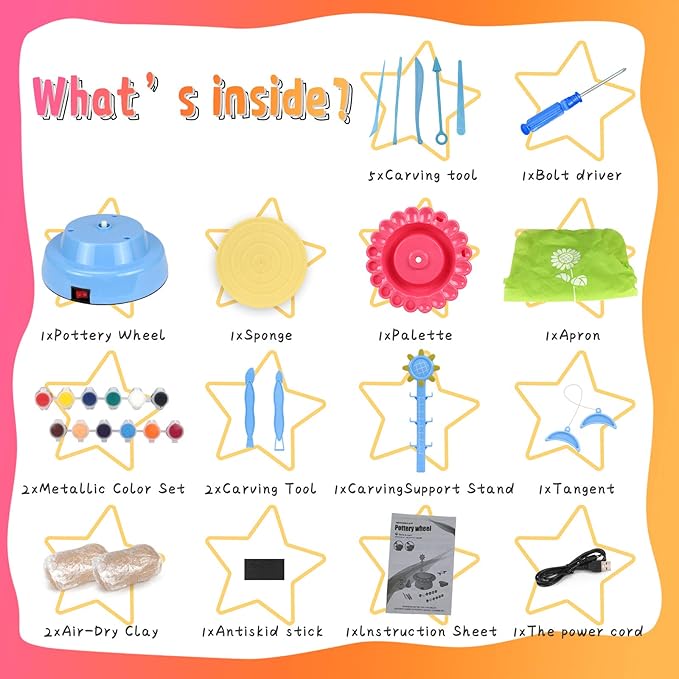 Pottery Wheel Art Craft Toys - Kids Art Kit Polymer Air Dry Clay Modelling Clay Kit for Kids DIY Pottery Studio Family School Beginner Education Sets (Blue-Pink)