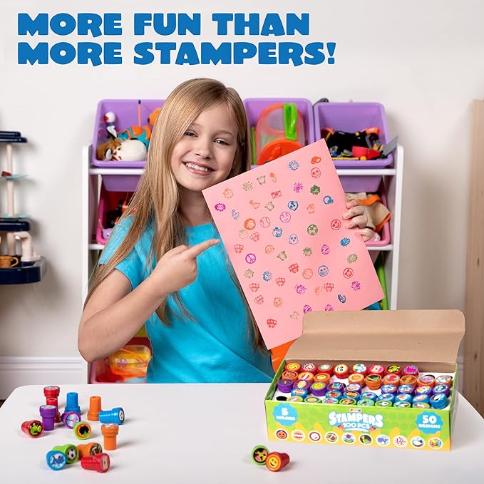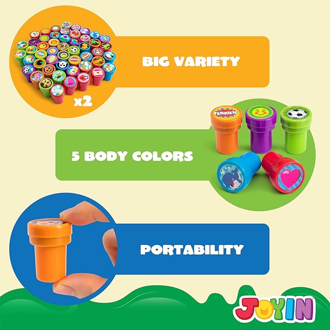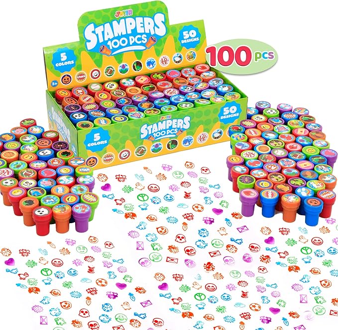 - INFINITE JOY. This assorted kids mini stamps set creates joy and excitement for kids. An excellent classic educational toy that provides hours of hands-on, screen-free play and learning. Great for party favor, teacher's classrooms, birthday party, school & classroom prizes, carnival prizes, stationery, greeting cards, scrapbooks design, and all other uses.