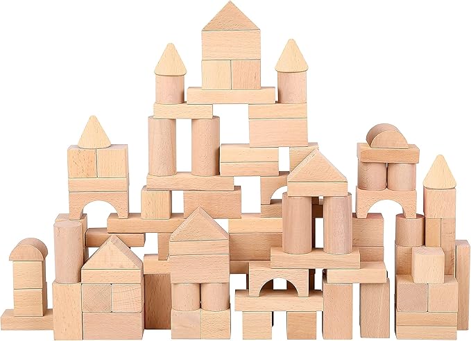 - ✔ Durable and Sustainable Wood - Each piece is carefully crafted to make sure there are no rough edges, ensuring safe play for kids and toddlers. Building blocks for toddlers.are a great choice for any occasion and play area; home, classroom, school, daycare, party and birthday gifts. Kids building blocks. 100 piece wooden block set.