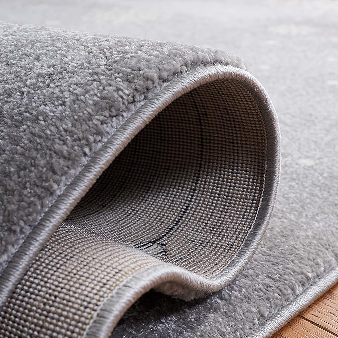 SAFAVIEH Carousel Kids Collection Area Rug - 4' Square, Light Grey & Black, Non-Shedding & Easy Care, Ideal for High Traffic Areas for Boys & Girls in Playroom, Nursery, Bedroom (CRK132F)