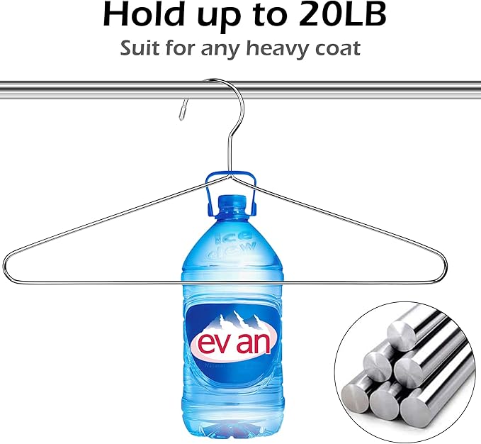- Hold up to 20 LB - With strongly construction and bearing capacity of wire hangers 50 pack, and enough sturdy to steadily hold heavy articles of clothing in your closet,the dorm hangers can also hold a men heavy leather coat easily;