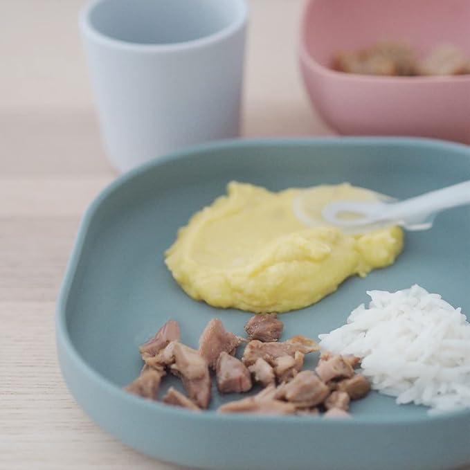 - DURABLE FOR 1ST AND 2ND STAGES: Ideal for both infants and self feeding toddlers, this set is crafted to grow with your child through their early stages of development. Made from 100% food-grade silicone, the baby plate and baby bowl are incredibly soft yet unbreakable, ensuring long-lasting use. The flexibility of silicone allows for easy handling and minimizes the risk of spills. The silicone baby spoon is specially designed to support babies as they learn to self-feed, with a gentle, rounded tip that’s easy on sensitive gums and teeth.