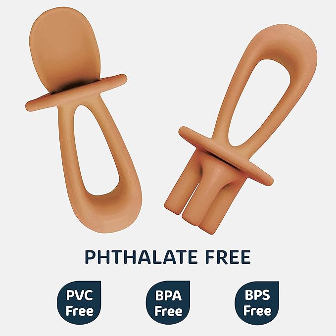 Tiny Twinkle Silicone Training Utensils - Baby Spoons & Baby Forks For Self-Feeding Training - Silicone Baby Led Weaning Utensils For Toddlers And Babies 6-24 Months - Baby Feeding Supplies (Cinnamon)