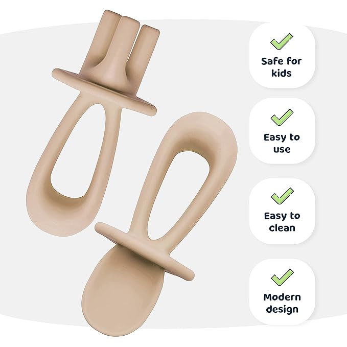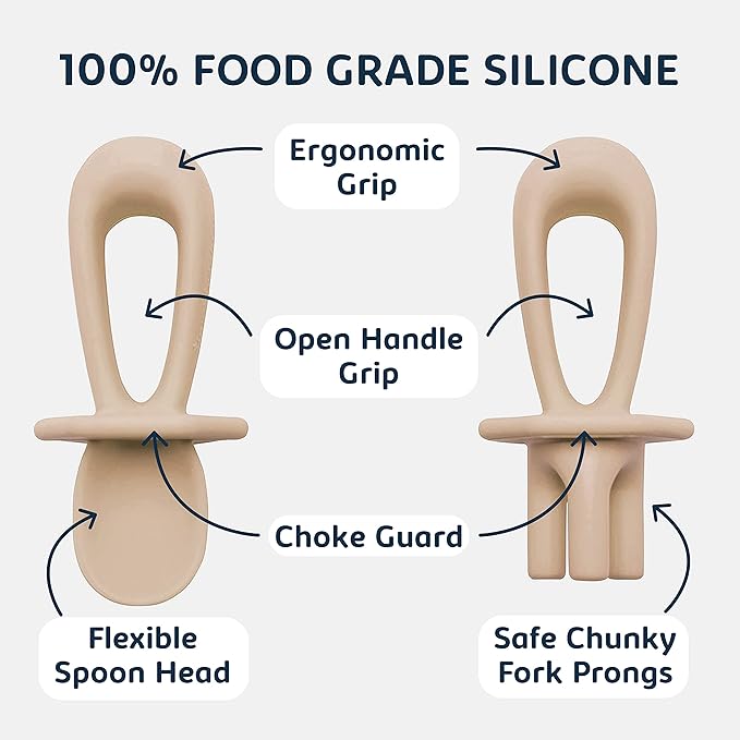 - TRAINING UTENSILS FOR BABY: Train your little one to be an independent self-feeder with a food grade silicone spoon and fork that feels soft and gentle on their gums. Our Tiny Twinkle silicone training utensils or baby-led weaning tools encourage your babies and toddlers in their first stage of self-feeding to learn how to eat in a fun, easy, and safe way.
