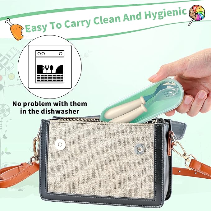 - Cutlery travel case: come with 3 sets toddler utensils with different color travel cases, which can keep the tableware clean, and you can put it into your bag, so that your baby utensils will still stay neat, reducing chance to contact with dirt