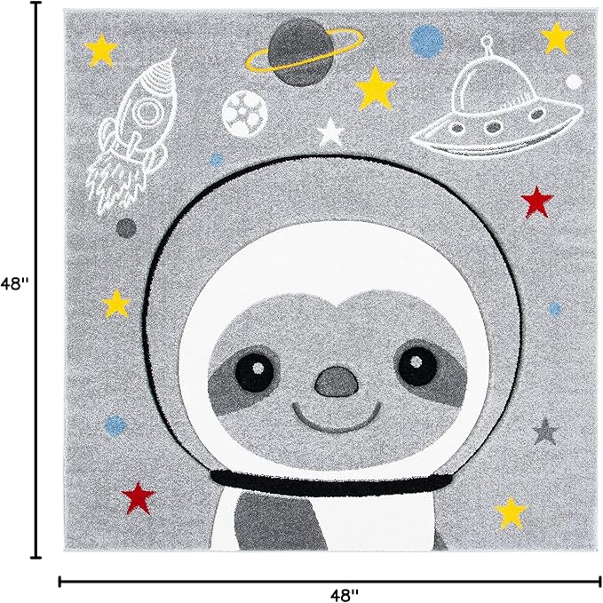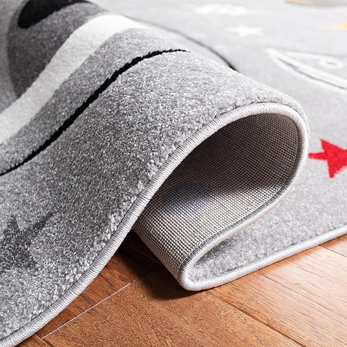 SAFAVIEH Carousel Kids Collection Area Rug - 4' Square, Grey & Ivory, Non-Shedding & Easy Care, Ideal for High Traffic Areas for Boys & Girls in Playroom, Nursery, Bedroom (CRK140F)