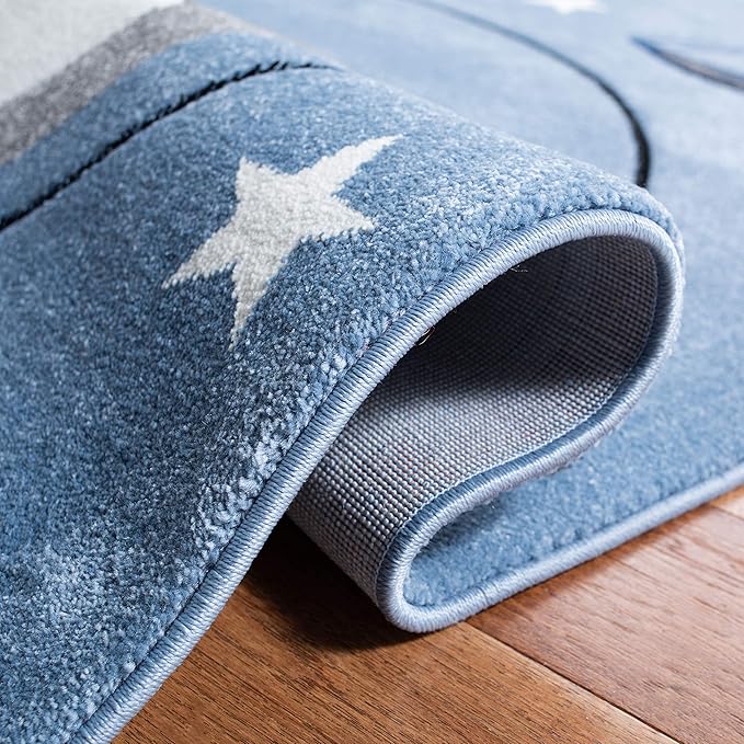 SAFAVIEH Carousel Kids Collection 3' Square Blue/Grey CRK140M Sloth Astronaut Non-Shedding Playroom Nursery Bedroom Area Rug