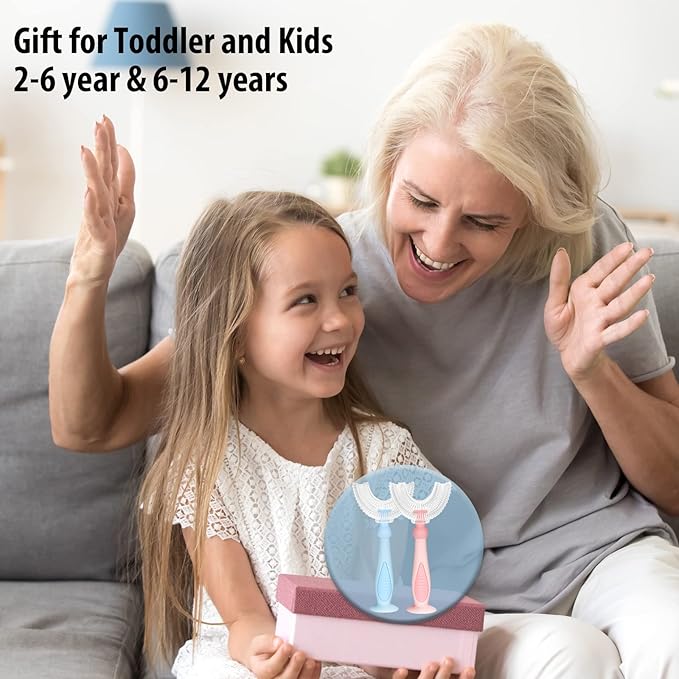 Kids Toothbrushes U Shaped with 3 PCS Soft Food Grade Silicone Heads for Toddler,Childrens, Full Mouth Tooth Brush for Age 2-6 Years Blue