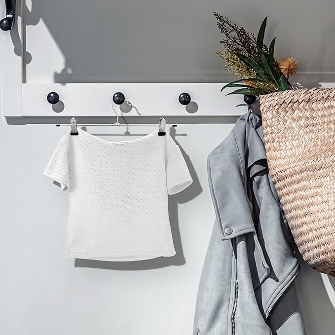 - 【High Quality】-Coated in anti-rust chrome plating, this metal trouser clip hanger is tough and durable. Shiny chrome finish ensures stainless steel skirt pant hanger durability for years to come. Rubber tips cover exposed edges for safety.The chuck of skirt pant hangers with clips is protected by dipping to increase friction,which can hold the hanging clothes firmly, and there is no pinch mark.