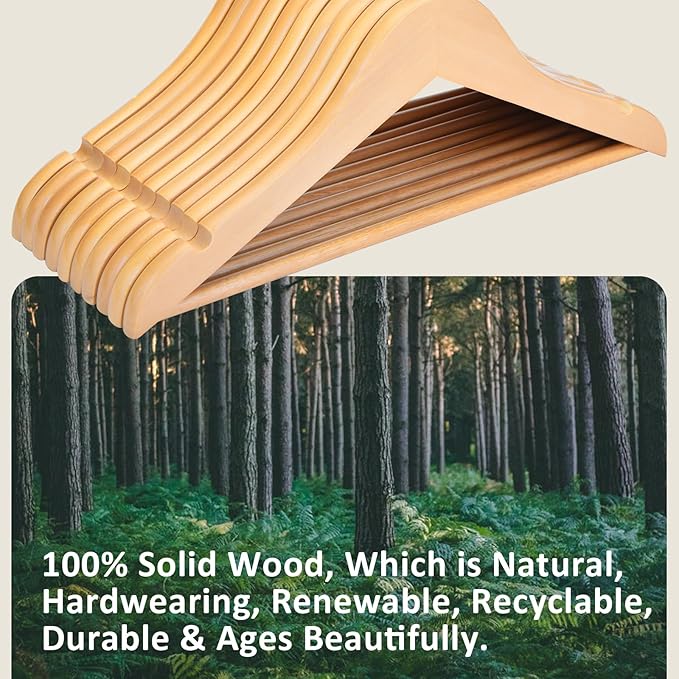 - 100% Natural Kids Wooden Hangers: Our kids hangers are made of high-graded maple wood in durable and sturdy triangle shape for long time use; coated in eco-friendly lacquer for added protection decorates. The special wood grain brings your baby closet more beautiful and fashionable.