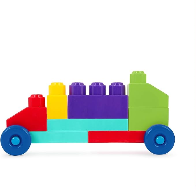 - 80-Piece Set: 80 colorful bricks, including 2 linking bases and 8 wheel pieces to get things moving.