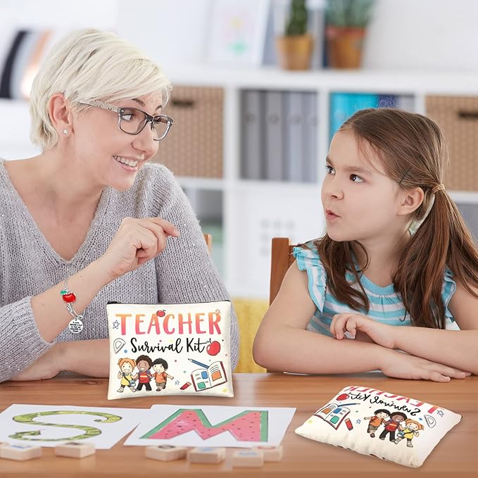 - Nice combination: these teacher appreciation gifts include 4 pieces of teachers cosmetic bags and 4 pieces of teacher bracelets carved with warmhearted words, cute and thoughtful combinations can meet your gifting needs