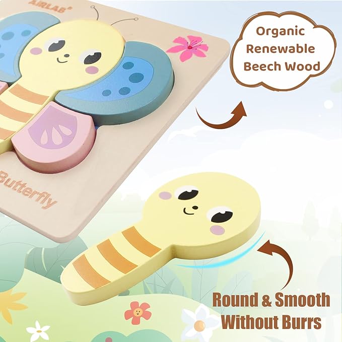 - PREMIUM QUALITY & SAFETY: These insect-themed wooden puzzles are made from high-quality renewable rubber wood with smooth edges for safe play