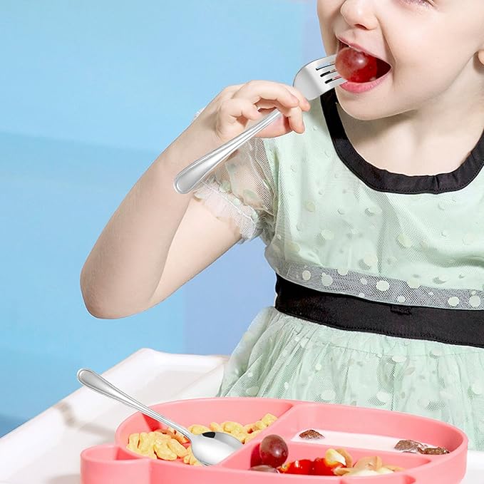 - Ergonomic design, right size ideal for little hand and mouth, kids forks are sharp enough to stab food easily but wouldnāt hurt childrenās mouth, baby spoons are deep enough to hold a good amount of soup
