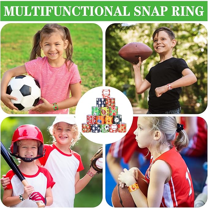 - Cute Sports Theme Design: these colorful slap bracelets party favors are designed with 12 sports ball printed party items in 12 different styles, featuring four ball games, including football, basketball, baseball and football, which are lifelike and charming enough to meet your different preferences and needs