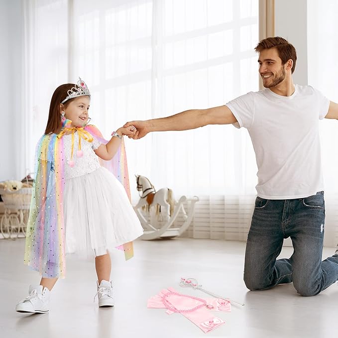 • Wonderful Gift: This lovely role play cape set perfect for play princess dress up. It's a creative charming princess costumes accessories, wonderful useful gifts for her. Your little princess would be happy to scream when opened the gift bag, she would be a pretty princess.