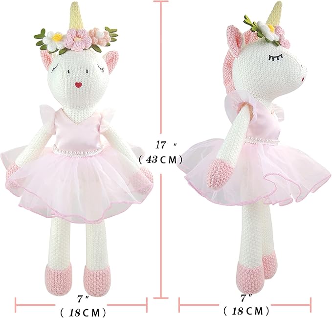 • 【Safe for Kids】:Measuring at 17” tall, this plush unicorn stuffed animal is safe for kids and meant for ages 3 years and up.The material is soft, non-toxic and harmless, no harm to the baby's skin. You can rest assured to let the baby play.