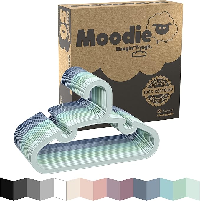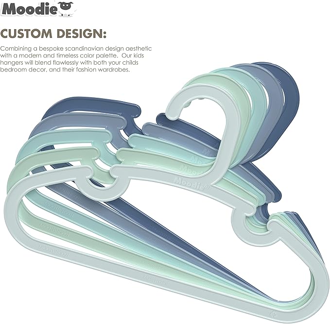 - π¨ Stylish Scandinavian Design: Add a touch of Scandinavian flair to your child's closet with our bespoke color options. Choose from bright white, pink sunset multi, or blue ocean ombre to match your child's style and personality. With both functionality and style, our Moodie medium childrens hangers for clothes are the perfect addition to any small wardrobe.