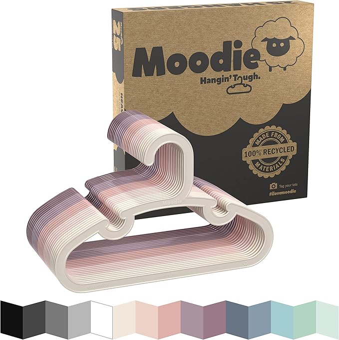 - π¨ Stylish Scandinavian Design: Add a touch of Scandinavian flair to your child's closet with our bespoke color options. Choose from bright white, pink sunset multi, or blue ocean ombre to match your child's style and personality. With both functionality and style, our Moodie medium childrens hangers for clothes are the perfect addition to any small wardrobe.