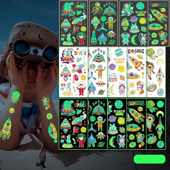 - Space Party Favors Included: 20 space slap bracelets, 10 space stampers, 10 rocket keychains, 10 sheet temporary tattoos, 6 space keychains, 6 space rubber rings. Great Space Party Favors for Kids Birthday Party.