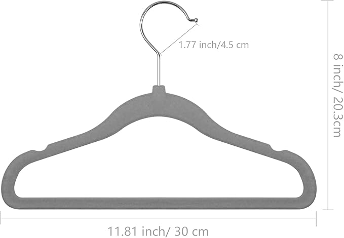 - 5. Excellent dimension with standard hook sized: 1.77". Baby velvet hangers for nursery is 11.81" x 8" approx, ideal for clothes size from newborn kids clothing all the way to toddlers.